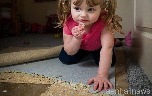 عندما ترى صورة هذه الطفلة البريئة ستظن أنها تتسلى بأكل قطعة حلوى ككل الأطفال في سنها، ولن تتخيل أبدًا أنها تأكل قطعًا من السجاد والأثاث، ويمكن أن تأكل أيضًا رقائق من الأسمنت وكتل الرصف والرمل.