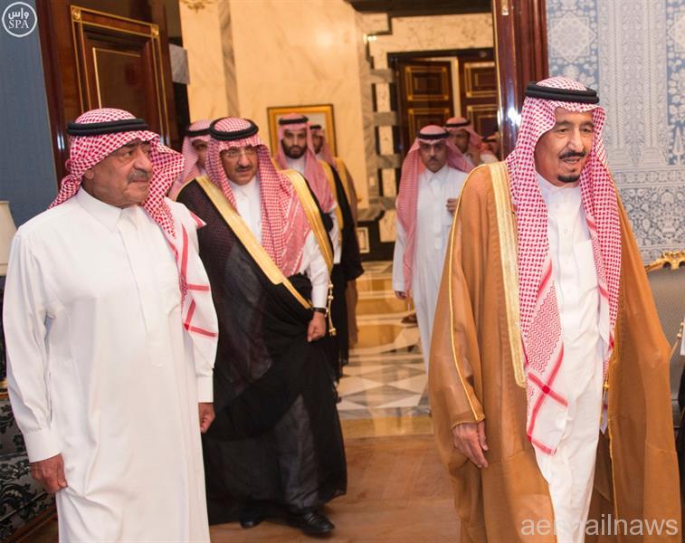 ولدى وصول الملك المفدى القصر, كان في استقباله صاحب السمو الملكي الأمير مقرن بن عبدالعزيز آل سعود.كما كان في استقباله -أيده الله- صاحب السمو الملكي الأمير فيصل بن مقرن بن عبدالعزيز وصاحب السمو الملكي الأمير عبدالعزيز بن مشعل بن سعود، وصاحب السمو الملكي الأمير عبدالعزيز بن هذلول بن عبدالعزيز، وصاحب السمو الملكي الأمير تركي بن مقرن بن عبدالعزيز، وصاحب السمو الملكي الأمير منصور بن مقرن بن عبدالعزيز مستشار خادم الحرمين الشريفين، وصاحب السمو الملكي الأمير تركي بن محمد بن فهد، وصاحب السمو الملكي الأمير بندر بن مقرن بن عبدالعزيز، وصاحب السمو الملكي الأمير عبدالعزيز بن سعود بن نايف، وصاحب السمو الملكي الأمير سعود بن عبدالرحمن بن ناصر، وصاحب السمو الأمير فيصل بن محمد بن سعد عبدالرحمن، وصاحب السمو الملكي الأمير نواف بن نايف بن عبدالعزيز، وصاحب السمو الملكي الأمير سلطان بن فيصل بن محمد، وصاحب السمو الملكي الأمير فيصل بن فهد بن مقرن وصاحب السمو الملكي الأمير فهد بن نايف بن عبدالعزيز.