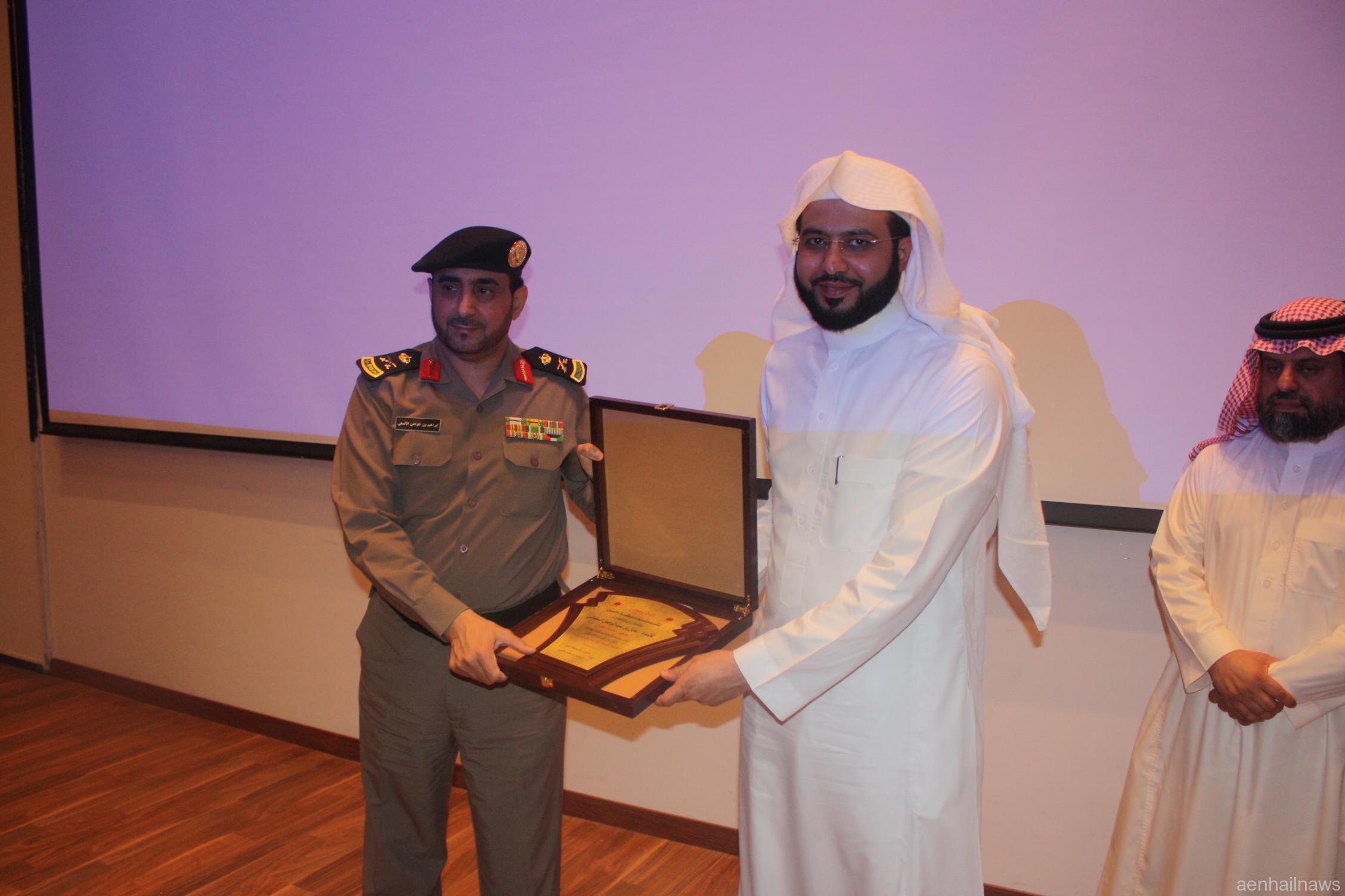 رعى سعادة اللواء إبراهيم بن عواض الألمعي مدير شرطة منطقة حائل ورشة العمل التي أقامتها شرطة منطقة حائل بالتعاون مع جامعة حائل مساء الاثنين بقاعة الشيخ علي الجميعة بالغرفة التجارية تحت عنوان : الثقافة النظامية لرجال الامن واثرها على الاداء )