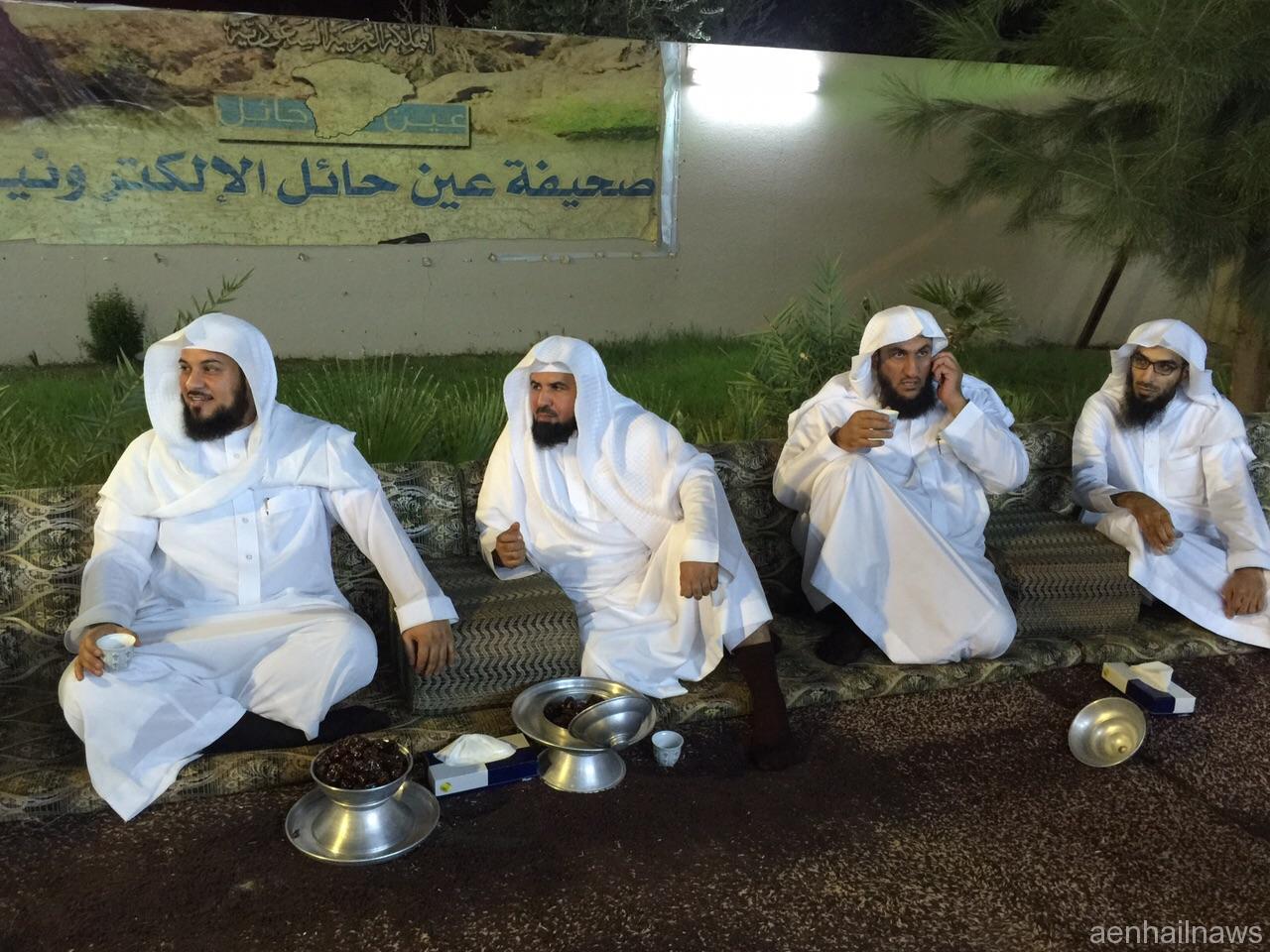 حينما تدق الأجراس .. تنشد الأطيار لحن الخلود..فتعانق النسمات.. غروب الشمس .. يتوهج البدر حاملا معه باقات من الزهر .. لينثرها بين الأيادي .. معلنة موعد فجر جديد يصاحبه نور قلم وفكر فريد .. نستقبله والبشر مبسمنا .. نمزجه بشذا عطرنا فأ هلا و مرحبا ممزوجة .. بعطر الورود .. ورائحة البخور مرحبا بضيفنا عدد ما خطته الأقلام من حروف نحييه بتحية تتدفق عطرا في سواقي الروح وتنبت على ضفتيها فل ونرجس وريحان بحضوره ازدان جو مقر “صحيفة عين حائل الإخبارية ” فأشرقت شمس الإبداع فيه فتراقصت أغصان الشوق لتقدم له باقة من ورود العطاء والمحبة .بكل الود استقبلت الصحيفة قبل قليل بمقرها الشيخ الدكتور / محمد بن عبدالرحمن العريفي الداعية الإسلامي المعروف وكان يرافقه الداعية الشيخ / براك الجرباء والشيخ نايف الغبيني حيث تحدث عن متابعته لـــ”صحيفة عين حائل الإخبارية ” وما وصلت إليه من مكانة كبيرة وواجهة مشرفة لمنطقة حائل وفي نهاية الزيارة تصفح موقع الصحيفة على الإنترنت ثم وجه كلمة تكلم فيها عن الصحيفة ومجهوداتها في مواكبة الأحداث أول بأول وأنه متابع لها وتوقع لها في المستقبل القريب قفزات كبيرة لما تقدمه من جهد وعمل متواصل وتم التقاط صور تذكارية جماعية