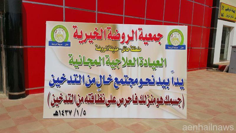 من منطلق خدمتها للمجتمع اقامت الجمعيه الخيريه بمدينة الروضة بالتعاون مع جمعية مكافحة التدخين بحائل معرض مكافحة التدخين بنادي الريان الرياضي