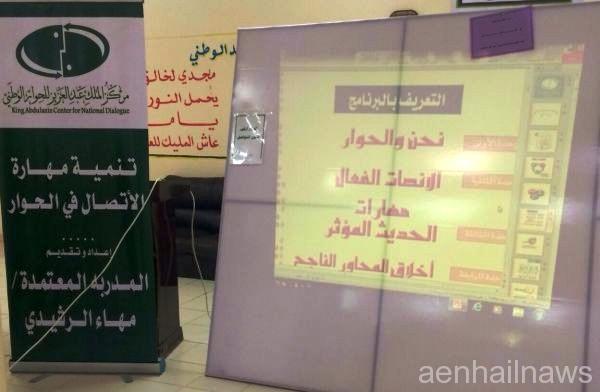 حيث طرقة المدربة الرشيدي اثناء المحاضرة الي التأدَّب في الحوار مع أهل العلم والفضل والرأي ، وان لا يقاطع المتحدث مَن أمامه حتى يطرح رأيه ، وينتهي من عرضه كاملاً . وأشارت الي وجوب استيعاب جميع ما يطرحه الطرف الآخر قبل الإجابة عليه ، وتريَّث قبل التحدُّث معه.