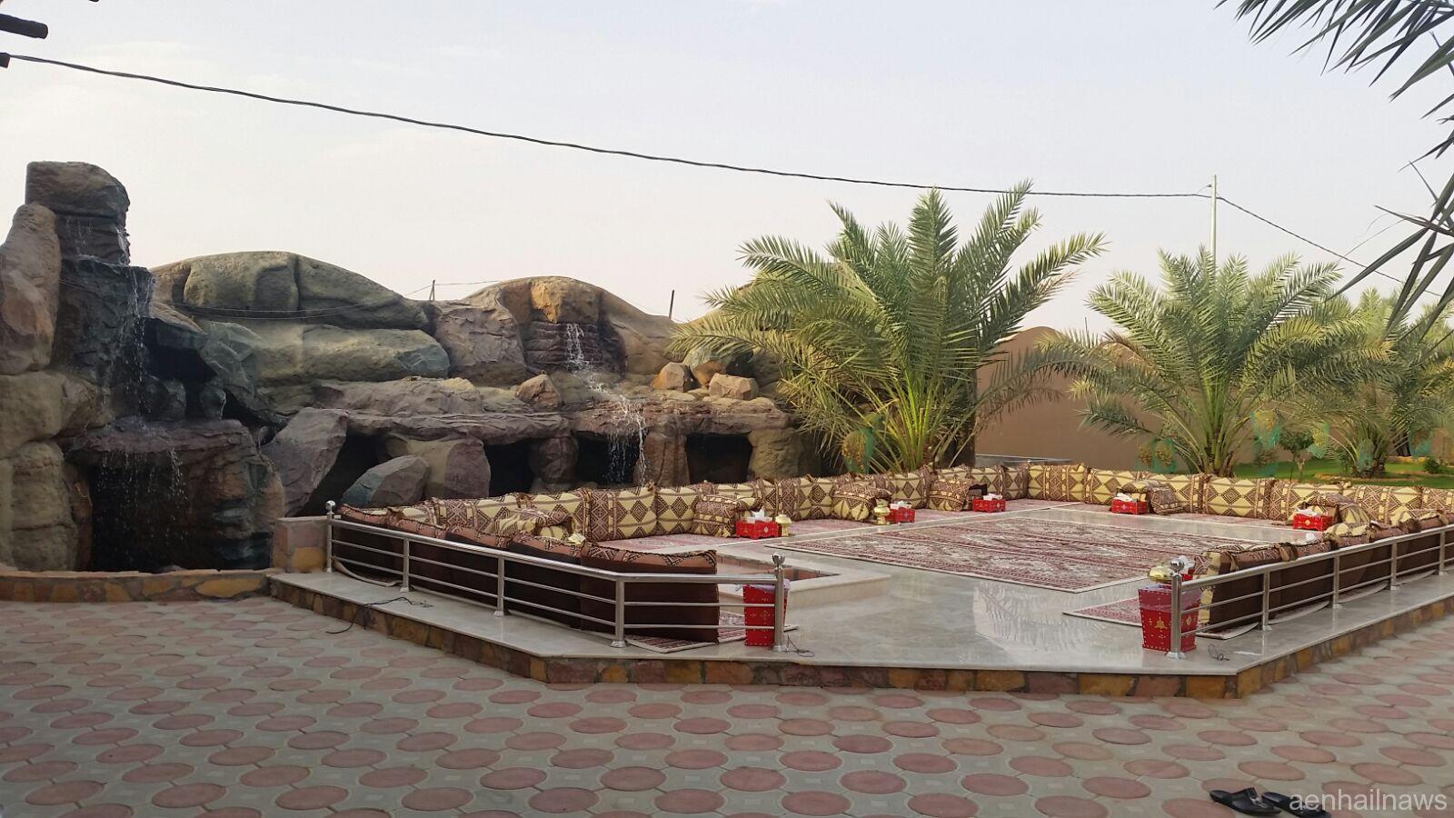 استراحة مساحه ١١ الف متر يوجد بيت ومجالس و مسبح واشجار ونخيل وجلسات خارجيه ونوافير ومسطحات وبير