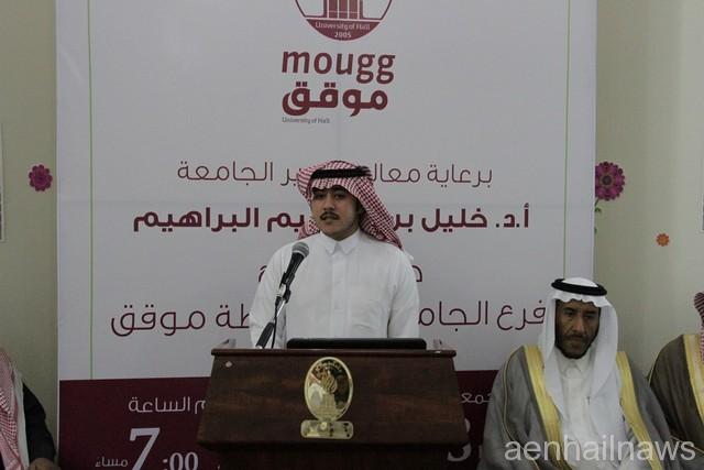 وقال مدير جامعة حائل الدكتور خليل بن إبراهيم البراهيم في كلمة ارتجالية أكد فيها أن افتتاح فرع للجامعة في موقق في بداية العام الدراسي يحقق توجهات الجامعة نحو نشر التعليم الجامعي في كل محافظات المنطقة، ومشيرًا إلى أن الجامعة استطاعت افتتاح الفرع في وقتٍ وجيز بتعاون أهالي موقق ودعمهم لأعمال الجامعة لإفتتاح الفرع.