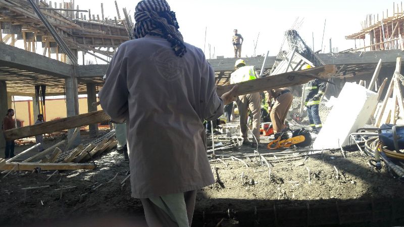 تعرض أربعة عمال لإصابات متفرقه بسبب انهيار جزء من الدور الثالث بمدرسة ثانوية تحت الإنشاء في حي المصيف بحائل وباشرت فرق الدفاع المدني بحائل الحادث وقامت بإخراج اثنين من العمال من تحت الأنقاض، جراء الحادث وخلال وقت وجيز وصلت فرق الهلال الأحمر إلى الموقع؛ لإنقاذ الشخصين الآخرين من تحت الأنقاض وستوافيكم “عين حائل الإخبارية ” بمزيد من التفاصيل فور ورودها.