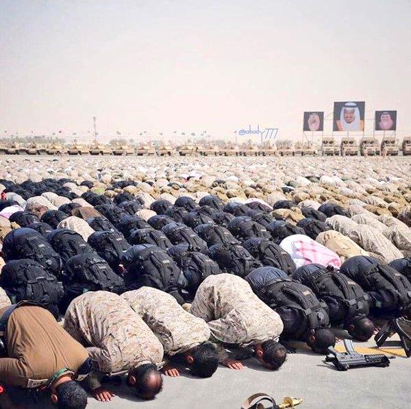 تناقل عبر وسائل التواصل صورة قالوا إنهما لجنود القوات المشاركة في مناورة رعد الشمال، والتي اختتمت الخميس الماضي في مدينة الملك خالد العسكرية بحفر الباطن، بمشاركة 20 دولة بقيادة المملكة، وهم يؤدون الصلاة في ميدان التدريب.ونالت الصورة استحسان الجميع مؤكدين أن مشهد اصطفافهم أثناء أداء الصلاة هو منظر مشرف يدل على التوحد والقوة.يذكر أن تمرينات رعد الشمال اختتمت الخميس الماضي بحضور خادم الحرمين الشريفين، الملك سلمان بن عبدالعزيز، وولي العهد، وولي ولي العهد، بالإضافة إلى قادة الدول المشاركة في المناورة.