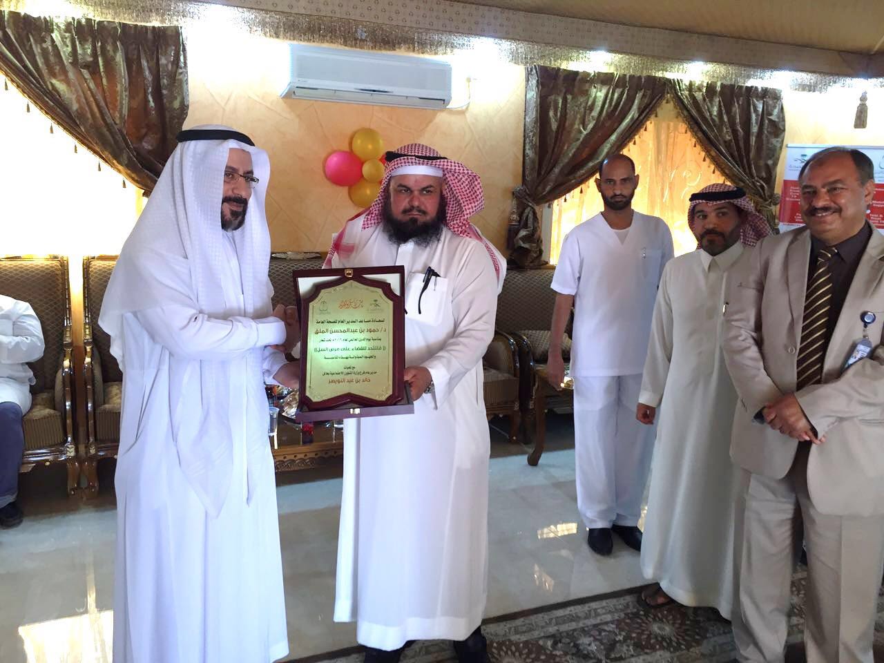 وبعد ذلك بدات عملية المسح على نزلاء المركز وفي نهاية اليوم تم تقديم درع من سعادة مديرعام فرع وزارة الشؤون الاجتماعية الاستاذ خالد النويصر لسعادة مساعد مديرعام الشؤون الصحية شكرهم على اهتمامهم بذوي الاحتياجات الخاصة وتفعيل دور الشراكة والتعاون لمصلحة هذه الفئة المستفيدة من الرعاية لنزلاء المركز داعيا الله للجميع التوفيق والسداد.