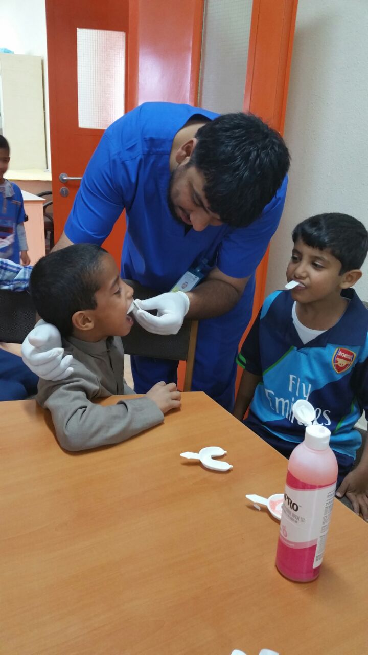 أقام مركز صحي الغزالة احتفال بمناسبة الأسبوع الخليجي السابع لتعزيز صحة الفم والاسنان واستكمالا لأنشطة إدارة طب الاسنان بمنطقة حائل تم يوم الاثنين الموافق 26-6-1437 حيث تم عمل محاضرة توعوية لطلاب مدرسة جعفر الطيار الابتدائية في محافظة الغزالة وتدريب الطلاب على الطريقة الصحيحة لاستخدام الفرشاة والمعجون . بالإضافة لتطبيق مادة الفلورايد وتوزيع هدايا تذكارية لهذه المناسبة . اشرف عليها مدير مركز صحي الغزالة الأستاذ جمال الطوالة و الدكتور عبدالعزيز الشطيب ومدير المدرسة الأستاذ سعود العبيد وعدد من الكادر التعليمي .