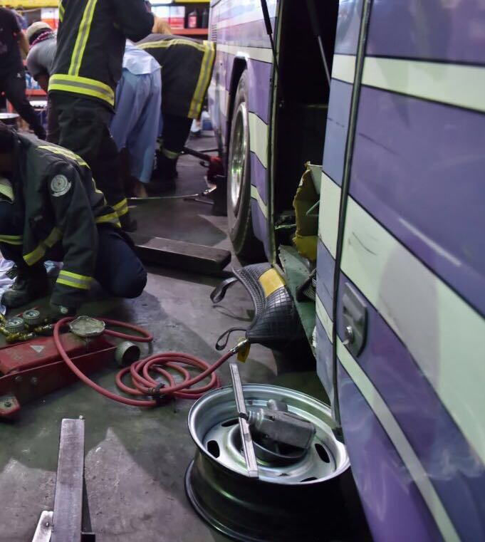 تمكنت فرق الدفاع المدني بمدينة حائل مساء اليوم الإثنين الثالث والعشرين من شهر محرم من إنقاذ قائد حافلة حيث سقطت عليه حين كانت متوقفة داخل إحدى محطات الوقود بحي الوسيطاء .ولدى رفعها باستخدام الرافعات الموجودة داخل محل إصلاح الإطارات قام قائدها بتفقد أجزاء الحافلة السفلية إلا أن الرافعة سقطت واحتجز قائدها وتعرض لإصابات في جسده ونقل للمستشفى بواسطة إسعاف الهلال الأحمر نسأل الله أن يمن عليه بالشفاء العاجل أوضح ذلك لـــ ” صحيفة عين حائل الإخبارية ” المتحدث الرسمي للدفاع المدني بحائل المقدم / نافع الحربي