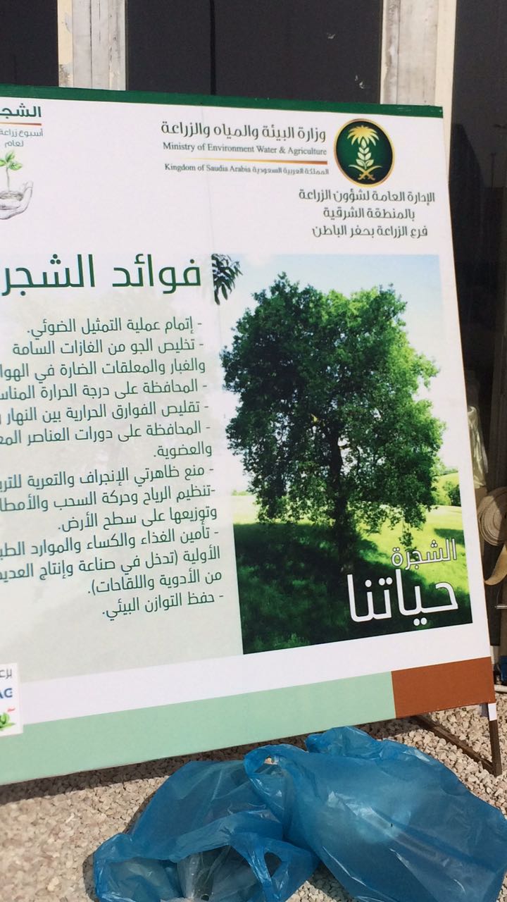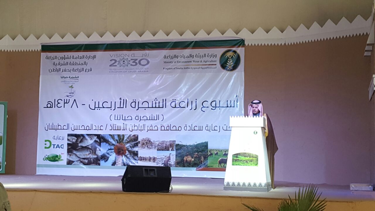 دشن محافظ حفر الباطن عبد المحسن بن محمد العطيشان بحفر الباطن اليوم ، فعاليات أسبوع الشجرة الـ 40 بالمحافظة والمقام بعنوان” الشجرة حياتنا “، الذي ينظمه فرع الزراعة بالمحافظة .