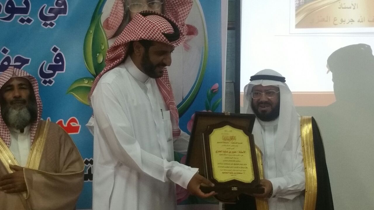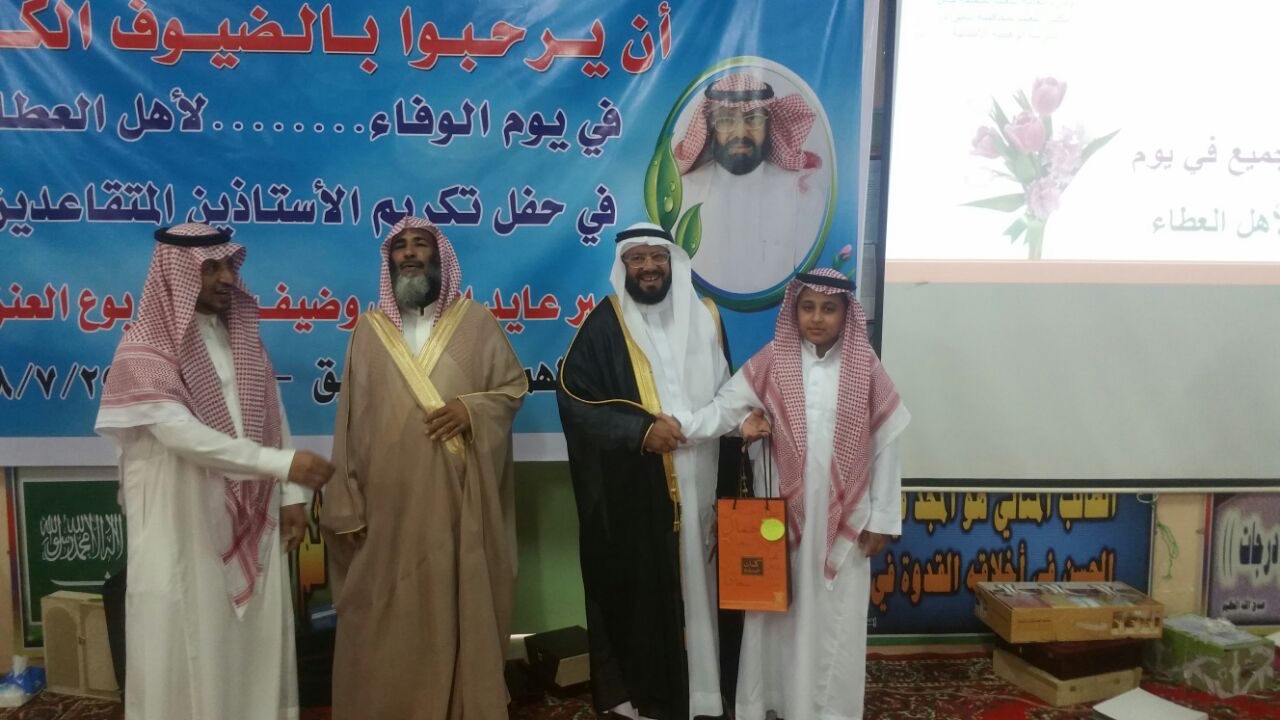 وبدء الحفل باأيات من الذكر الحكيم ثم كلمة مدير المدرسه الاستاذ ابراهيم مشعان العنزي اثنى فيها على تفاني المكرمين في عملهما وتوالت الكلمات والقاء الابيات الشعريه بهذه المناسبه وفي نهاية الحفل تم توزيع الهدايا والدروع التذكارية بهذه المناسبه وداعين لهم بالتوفيق بحياتهم الجديده بعد التقاعد