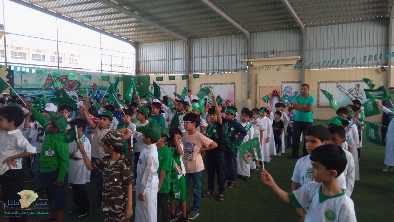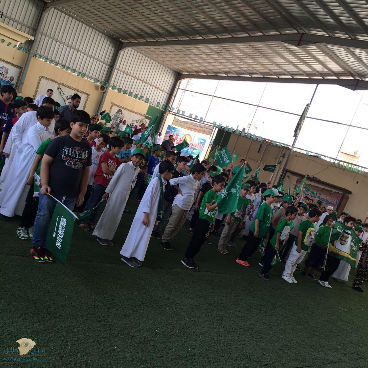 اقامت ابتدائية النموذجية الثانية بحائل حفل لليوم الوطني وذلك في يوم الاثنين الموافق 1439/1/6 هـ حيث تخلل الحفل العديد من الفقرات الانشادية ولبس الشعارات الوطنية والاعلام كما قامت ادارة المدرسة بتكريم المعلمين المشاركين في برامج الحفل .