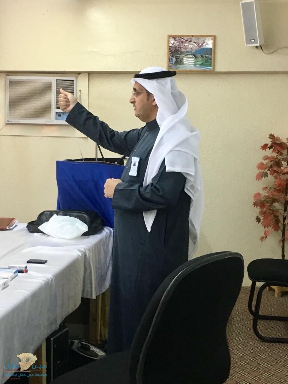 بعد قدم الدكتور مصلح الرشيدي مدير إدارة الرعاية الصيدلية بصحة حائل شرح عن داء السكري والمضادات الحيوية وعن أهمية الحرص على سلامة المرضى والحد من سوء استخدام المضادات الحيوية والتشديد على عدم استخدامها إلا بأمر الطبيب كما تم التطرق الدكتور مصلح إلى أنواع المضادات الحيوية والجرعات العلاجية مع ذكر الية عمل كل مضاد .