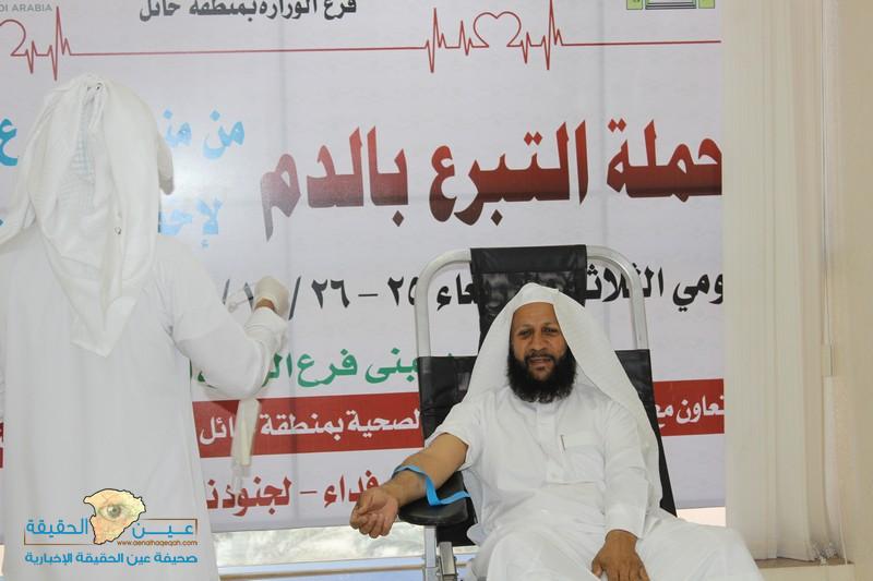 نظم فرع وزارة الشؤون الإسلامية والدعوة والإرشاد بمنطقة حائل بالتعاون مع المديرية للشؤون الصحية بمنطقة حائل ممثلة بإدارة المختبرات وبنوك الدم بمقر الفرع حملة التبرع بالدم من منسوبي فرع الوزارة لجنودنا البواسل المرابطين بالحد الجنوبي التي افتتحها مدير عام فرع الوزارة الشيخ عبدالعزيز بن إبراهيم العجيمي والتي شهدت مشاركة واسعة من منسوبي الفرع ومراجعيه وزواره المؤكدة للواجب الشرعي بالتراحم والتعاطف والتعاضد والتكافل والتعاون واستشعاراً من أبناء هذا الوطن المبارك بالدور العظيم الذي يقوم فيه جنودنا الرجال البواسلالأبطال في تقديم أرواحهم ودمائهم للدفاع عن بلادنا وشعبنا ومقدساتنا . وقد عبر مدير عام الفرع عن عظيم شكره لجميع القائمين على هذه الحملات والمتبرعين بدمائهم لإخوانهمالمرابطين في الحد الجنوبي مؤكداً أن هذه الحملة أتت استكمالاً للحملة التي قام معالي الشيخ الدكتور عبداللطيف بن عبدالعزيز آل الشيخ وزير الشؤون الإسلامية والدعوة والإرشاد بتدشينها مسبقاً بمقر الوزاره ووجه بإقامتها بجميع فروع الوزارة بمختلف المناطق حرصاً من معاليه على هذه الأعمال الإنسانية التي دعت إليها الشريعة الإسلامية وتقديم كل ما يمكن تقديمه لهؤلاء الأبطال العظام الذين بذلوا أنفسهم للدفاع عن هذا البلد الغالي ومقدساته مختتماً بالدعاء لولاة أمرنا ولجنودنا البواسل بالحد الجنوبي بالنصر والعزة والتمكين وأن يرحم ويتقبل شهدئهم وأن يعافي جرحاهم وأن يديم على هذه البلاد الغالية عزها وأمنها ورخائها واستقرارها في ظل حكومتنا الحكيمة الرشيدة .