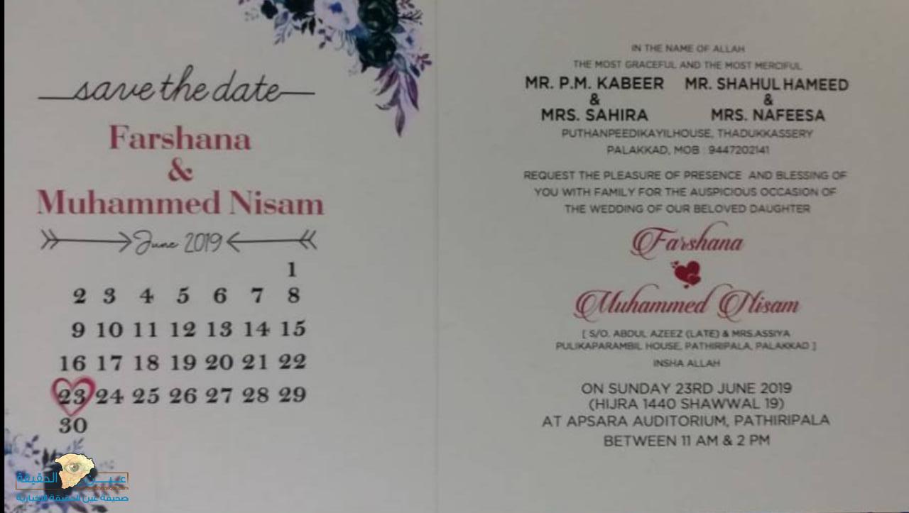 في بادرة جميلة تنم عن حسن التعامل والمحبة التي يكنها العامل لكفيلة حيث بعث عامل من الجنسية الهندية الي كفيلة بمدينة حائل بطاقة دعوة لحفل زفاف إبنته بمحافظة اب سارا طالباً له الحضور وان يحضر معه من يريد من الاقارب والاصدقاء