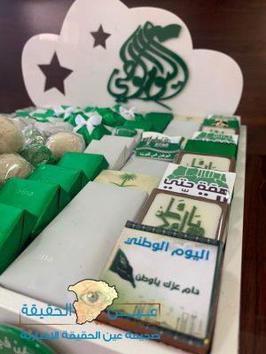 قامت مدرسة الفاروق الثانوية بتنظيم برنامجا خاصاً بمناسبة اليوم الوطني للمملكة العربية السعودية 89 ( همة حتى القمة ) منذ انطلاقة اليوم الدراسي ومع فعاليات الطابور الصباحي حيث توشحت جنبات المدرسة باللون الأخضر من شالات واعلام وباقات الورد ، القيت عدد من الكلمات والقصائد من اعداد الطلاب الذين تفاعلوا كثيرا مع الحدث ، وقد شارك جميع منسوبي المدرسة بالكتابة على اللوحات الجدارية عباراتهم ومشاعرهم تجاه الوطن الغالي ، الفعاليات اقيمت تحت اشراف ومتابعة من قائد المدرسة الاستاذ سعود الفريح ..