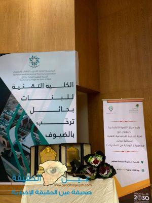 اقام فرع وزارة العمل والتنمية الاجتماعيه بحائل ممثلا بمركز التنمية الاجتماعية وبالتعاون مع لجنة حائل النسائيه وادارة مكافحة المخدرات بحائل محاضرة وورشة عمل في ما يخص الوقاية من المخدرات للمحاضرة الأستاذة / مزنه بنت ظاهر الشمري المحاضرة في جامعة حائل ومستشارة الحوار في مركز الملك عبد العزيز للحوار الوطنيوكذلك تم إقامة ركن مصاحب للورشة والتي تمتد لمدة ثلاثة أيام من يوم الثلاثاء الموافق ٠٣ /٠٦ / ١٤٤١ وذلك بمقر الكلية التقنية للبنات بحائل .