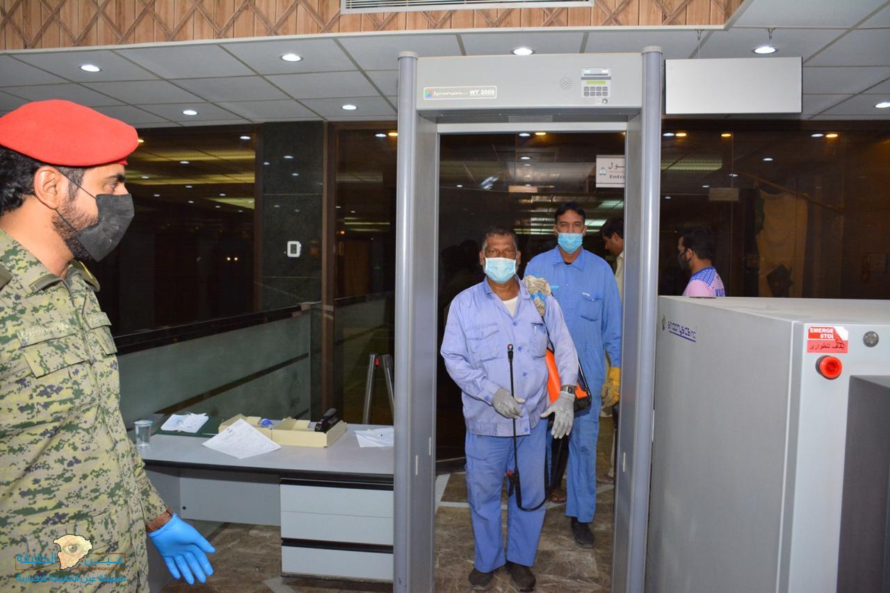 قامت جوازات منطقة حائل بالتعاون مع أمانة المنطقة، بتطهير وتعقيم جميع مرافق مبنى الإدارة وصالات المراجعين ،وذلك ضمن الخطط الإحترازية والسبل الوقائية التي تتخذها جوازات المنطقة والإدارات التابعة لها، لمنع انتشار فيروس كورونا.