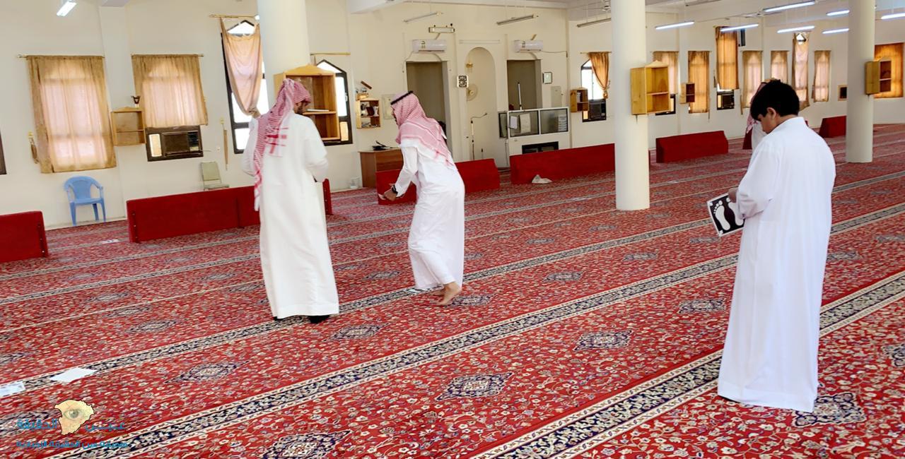 وحسب الأنظمة والقوانين التي صدرت من المسؤولين فقد قام الفريق التطوعي بالعمل والحرص على تباعد المصلين ووضع استكرات بينهم بمسافات معينة لضمان التباعد الإجتماعي