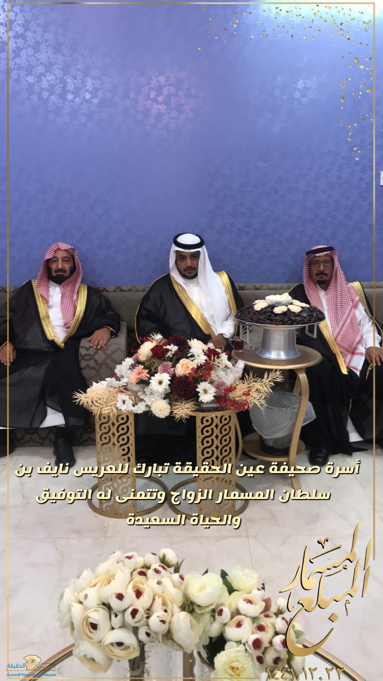 أحتفل مساء اليوم الأربعاء الموافق ٢٢-١٢-١٤٤١هـ سلطان الثويني المسمار بزواج إبنه الشاب: نايف في منزله بمدينة حائل بحضور الاصدقاء والاقارب .. واسرة عين الحقيقة تبارك للعريس وتتمنى له حياة سعيدة