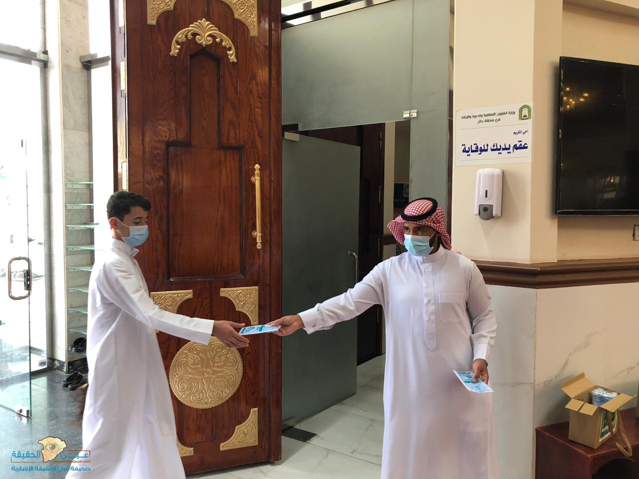 اطلق فرع وزارة الشؤون الإسلامية بمنطقة حـــائــل اليوم الجمعة مبادرة ( الوقاية في حائل …. هدف وغاية ) المتمثل بتوزيع عدد 40000 اربعون الف كمام ومجموعة من الادوات الاحترازية وهي المرحلة الأولى من المبادرة والتي دشنها مدير عام فرع الوزراة فضيلة الشيخ / عبدالله محمد المجماج يوم الأحد الماضي الموافق 11 / 1 / 1442 هـ بحضور سعادة مدير عام فرع وزراة تنمية الموارد البشرية بمنطقة حائل الاستاذ / فريح العياد ، و مساعد مدير عام فرع لوزارة الشؤون الإسلامية الشيخ / محمد عمر السائح .