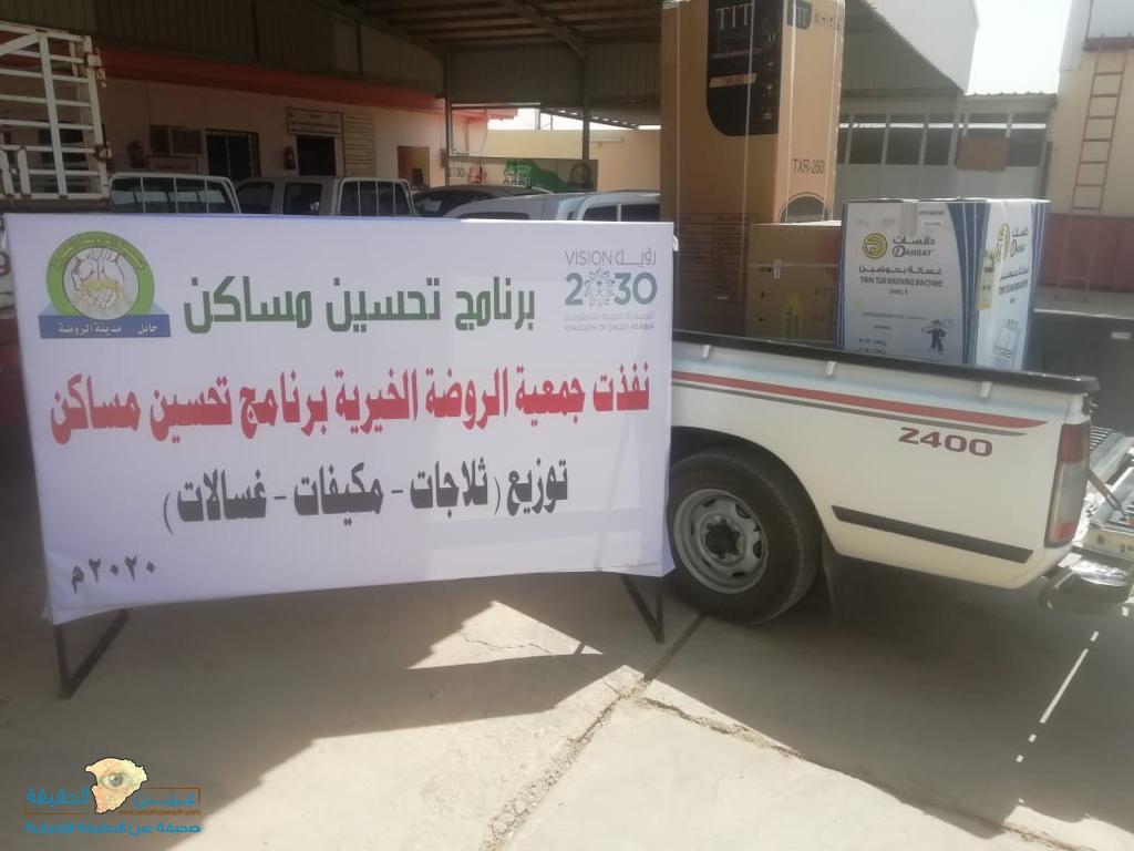 من ضمن خدمات جمعية الروضة برنامج تحسين مساكن الفقراء ومن خلاله قامت الجمعيه بتوزيع الثلاجات والغسالات والمكيفات على الأسر المحتاجه من ضمن نطاق الجمعيه ويعتبر هذا البرنامج من توجهات الجمعيه التي تلاقي قبول ورضا للمستفيدين منها.