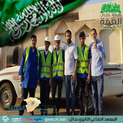 بمناسبة اليوم الوطني السعودي 90 قامت الإدارة العامة للتدريب التقني والمهني والمعهد الصناعي الثانوي بمدينة حائل في مبادرة وطنية إنسانية في إشارة إلى اللحمة الوطنية بين أفراد المجتمع في كافة المجالات حيث قام طلاب المعهد الصناعي الثانوي بمدينة حائل بصيانة منازل الاسر المحتاجة في مجالا الكهرباء والسباكة جاء ذلك تحت إشراف مدير المعهد المهندس خلف البراك .