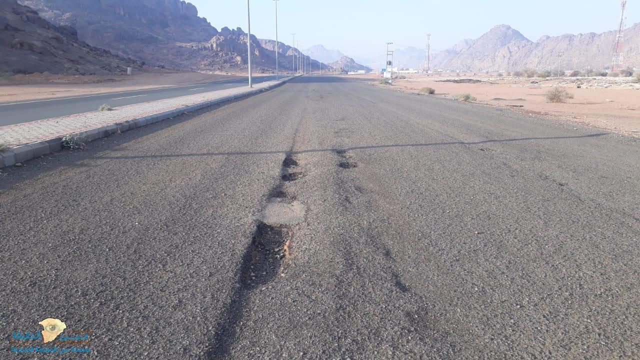 وكذلك يوجد تشققات بالطريق وحفر غرب مخطط اللقيطة بأتجاه الغرب ومرتادي الطريق يطالبون مكتب شمال المدينه وامانة حائل بأعادة الأزفلت