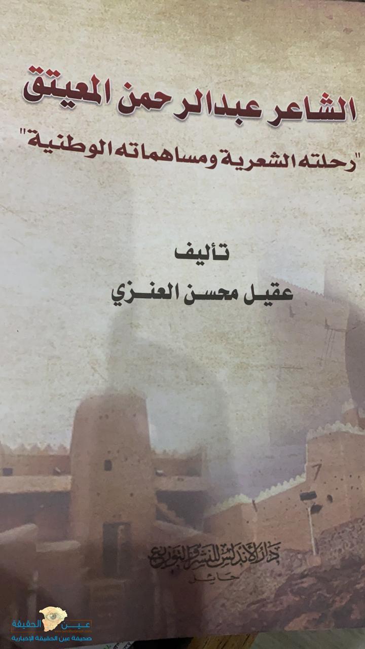 أقام أهالي أشبرية الصفراء حفلة عشاء هذا اليوم السبت الموافق 25/5/1442 احتفاءً بتدشين كتاب الشاعر عبدالرحمن المعيتق رحلته الشعريه ومساهماته الوطنية للمؤلف الإعلامي الاستاذ عقيل محسن العنزي وتخلل هذا الاحتفال كلمة لرئيس مركز اشبرية الصفراء الاستاذ عبدالرحمن حسن المعيتق رحب فيها بالضيوف وأثنى فيها على الكتاب والمؤلف الذي يتحدث عن سيرة علم من أعلام قبيلة الشملان وعنزه وإسهاماته الوطنيه مع جماعته في عهد المؤسس الملك عبدالعزيز آل سعود رحمه الله ومشاركتهم في توحيد المملكة العربية السعوديه ودورهم في التنميه من خلال تأسيس الهجر