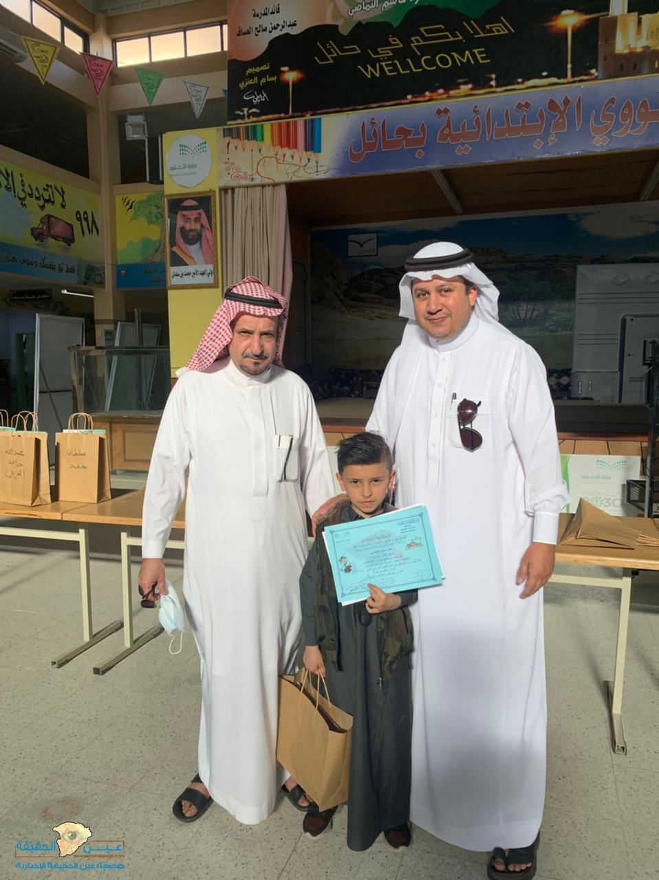 كرمت مدرسة النووي الابتدائية بمدينة حائل صباح اليوم الأحد 22-8-1442هـ ممثله بالأستاذ مبارك مقبل والأستاذ سحلي بن ملفي الشمري طالب الصف الثاني الابتدائي الطالب / عزام بن صالح نشمي الشمري وذلك نظير تفوقه في مواد القران الكريم ومادة التوحيد والفقه ومهارات اللغة العربية ويعد الطالب عزام من الطلاب المتفوقين دراسياً في الصف ومن خلال منصة مدرستي وقد قدم ولي أمر الطالب عزام الأستاذ صالح نشمي الشمري شكره وتقديره للمعلمين على جهودهم طيلة العام وعلى دعمهم وتشجيعهم لطلابه جزاهم الله خير الجزاء