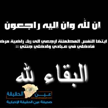 آسرة ( صحيفة عين الحقيقة ) تقدم تعازيها لأبناء وبنات الفقيد وكذلك لآسرة الدغشوم بمحافظة بقعاء ، انا لله وانا اليه راجعون