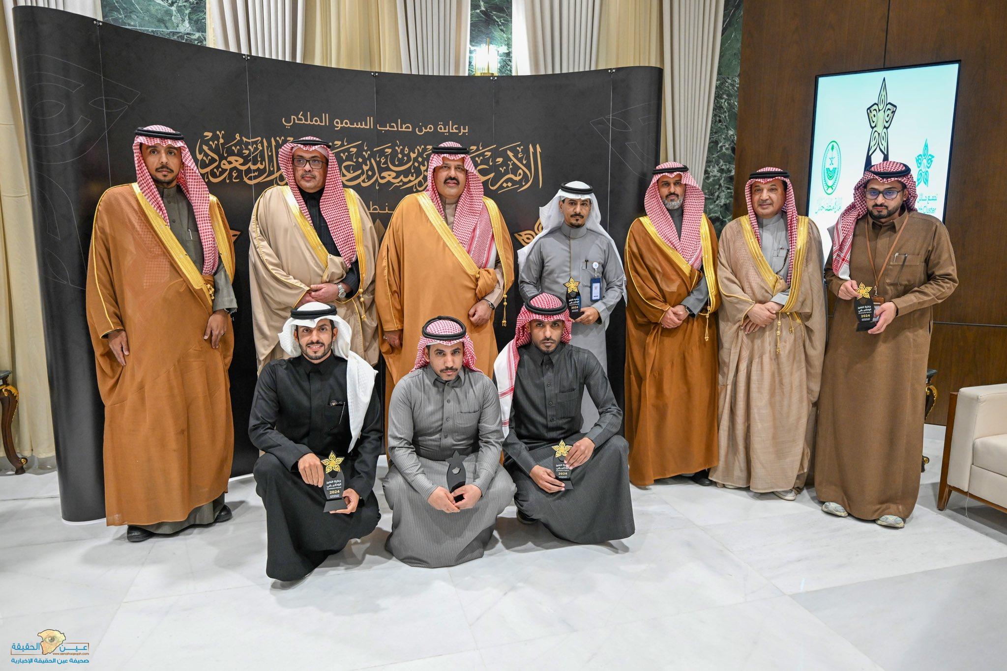 حيث كرم سموه الفائزين بالجائزة من منسوبي ومنسوبات التجمع الصحي والداعمين للجائزة .