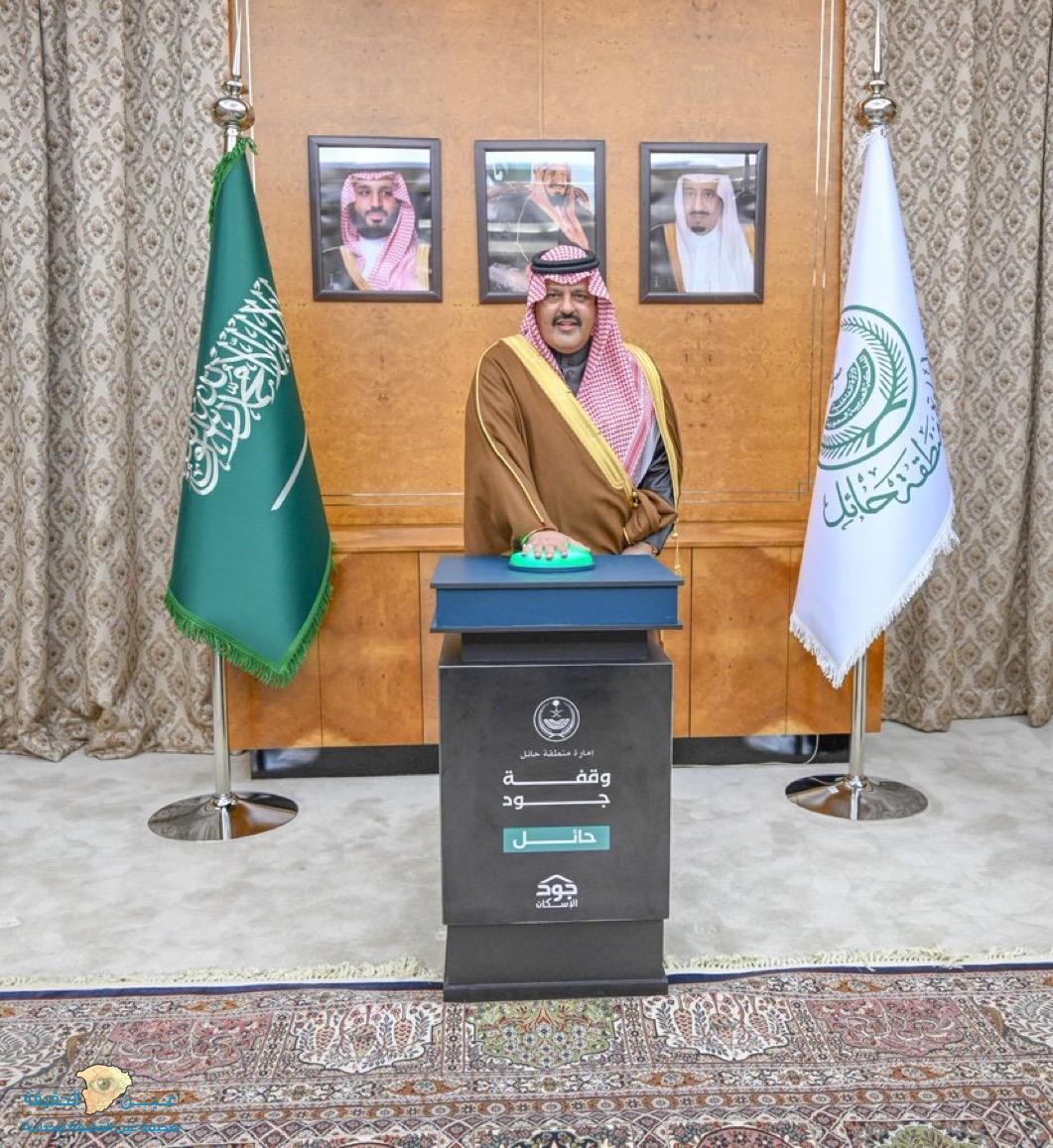 دشن قبل قليل صاحب السمو الملكي الأمير عبدالعزيز بن سعد بن عبدالعزيز أمير منطقة حائل حفظه الله وقفة ” جود حائل ” ضمن حملة جود المناطق بنسختها الثانية ” الجود يبي له وقفة “