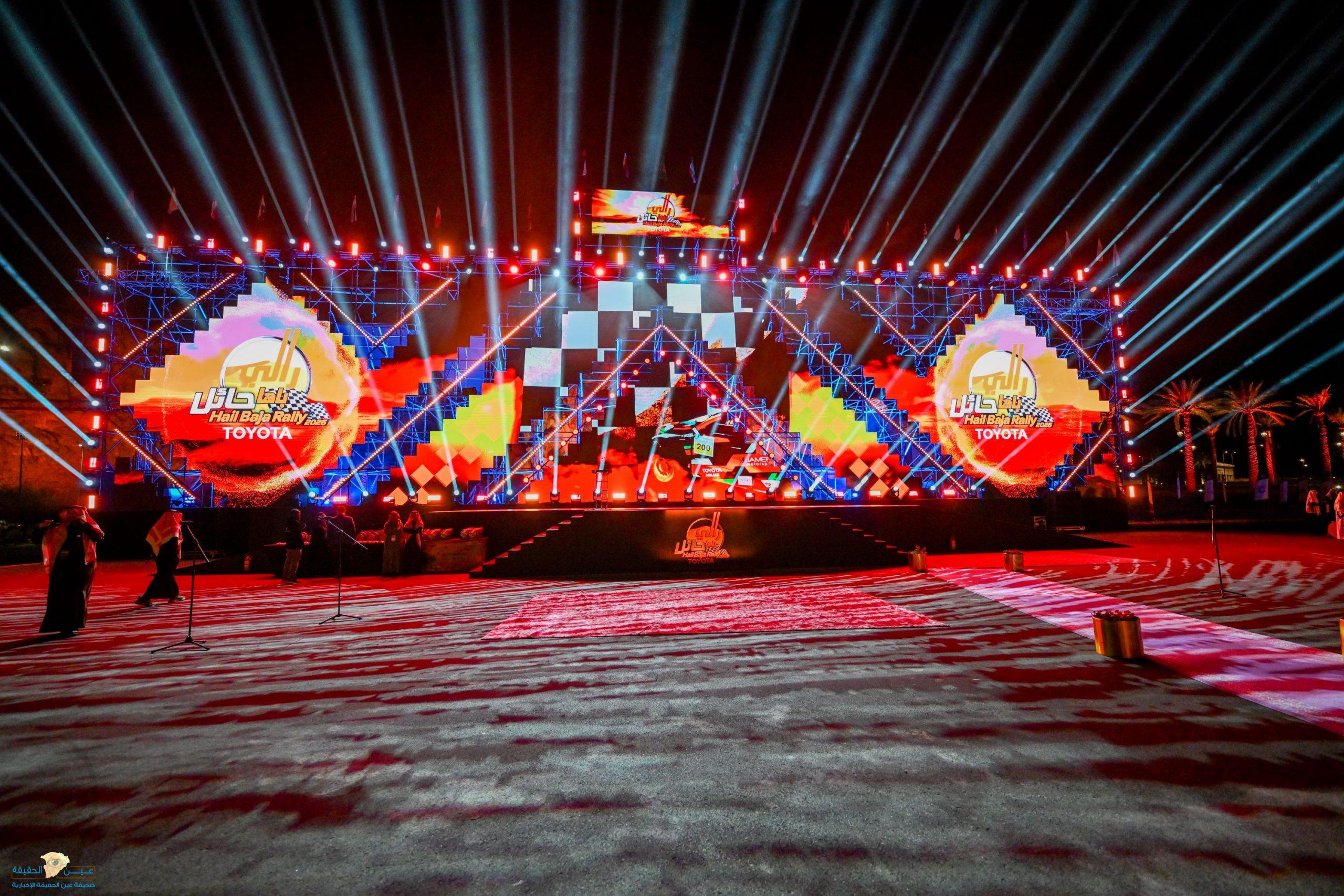 وقُدم عرض مرئي من منافسات المتسابقين بالرالي والفعاليات المصاحبة للرالي بمنطقة حائل، وكرّم سمو أمير منطقة حائل الرعاة ورؤساء اللجان لرالي باها حائل تويوتا الدولي 2026.