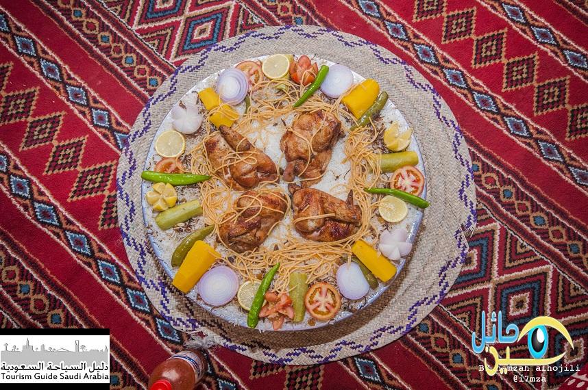مثل (( دجاج الشواية،دجاج المظبي،دجاج المندي،دجاج الحراق،لحم الغنم المندي،لحم الحاشي )) وكذلك أصناف متعددة من أنواع الأرز، ((أرزالبشاور- أرزالكبسه أرزالأجداد(الرصيص)……
