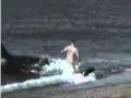 أبتلع حوت شاب صغير وهو على الشاطئ حينما كان يلوح للمصور الجدير بالذكر ان الحيتان تقترب من الشواطئ اذا كان هناك حيوانات تتغذاء ..